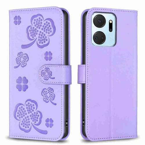 Funda para Teléfono Honor X7A Cuero con Relieve de Cuatro Hojas (Púrpura)