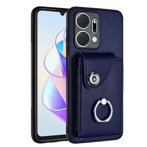 Funda para Honor X7A y Play7T de PU con Soporte para Anillo y Bolsa para Tarjeta (Azul)