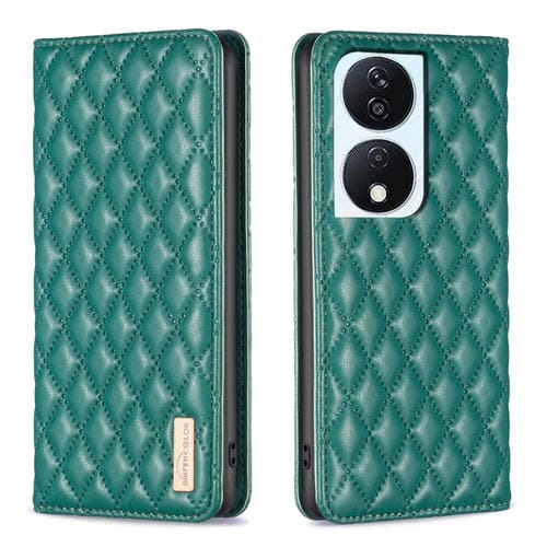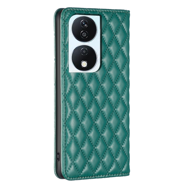 Funda para Honor X7B con Tapa de Cuero Magnético y Diseño Diamond Lattice (Verde)