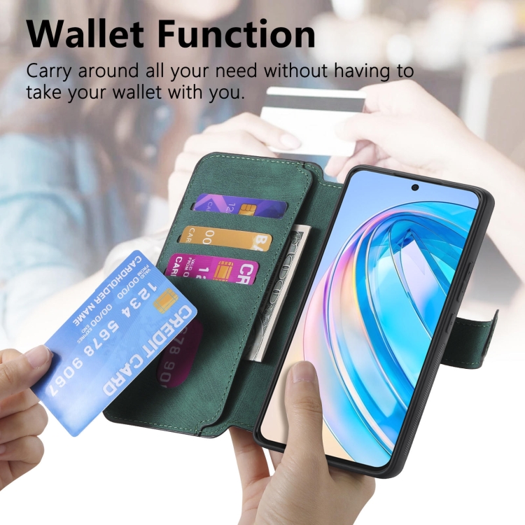 Funda de Cuero Caseneo para Honor X8A con Magsafe y RFID Antirrobo (Verde)