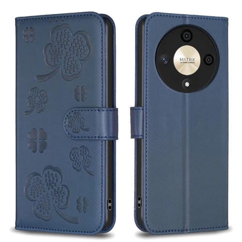 Funda para Honor X9B Magic6 Lite 5G de Cuero con Relieve de Cuatro Hojas (Azul)