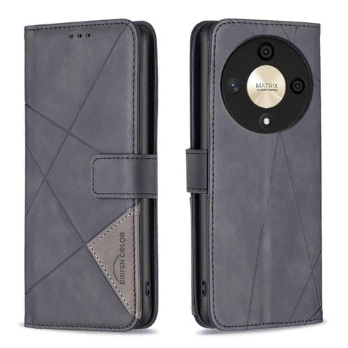 Funda para Honor X9B Magic6 Lite 5G de Cuero con Textura de Rombo y Hebilla Magnética (Negro)
