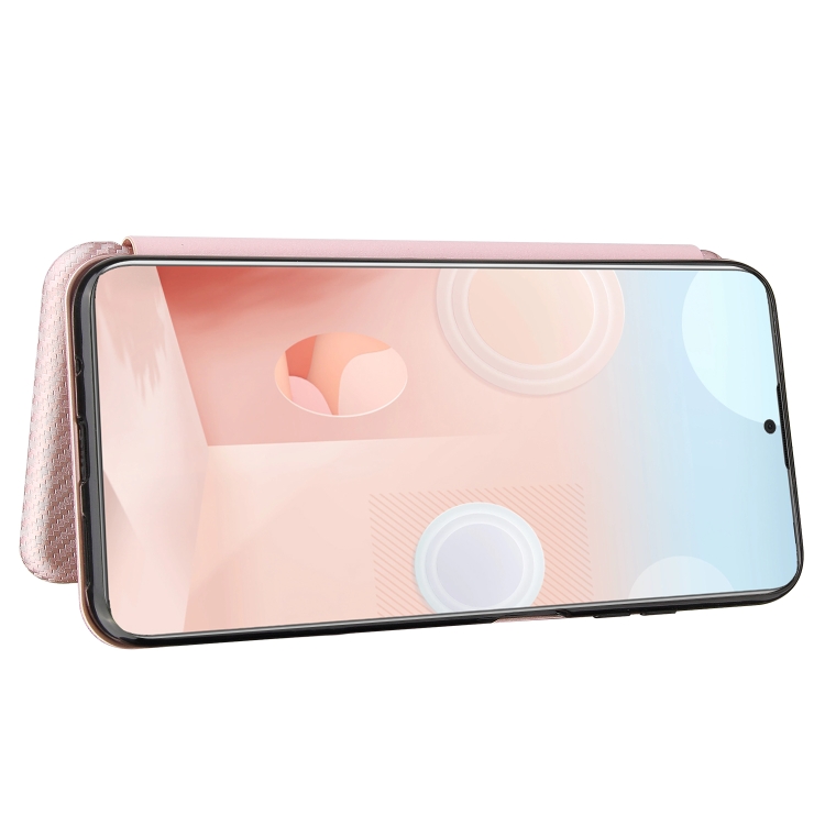 Funda para HTC Desire 21 Pro Cuero con Textura Fibra de Carbono Magnética Tapa Horizontal TPU + PC + PU con Ranura para Tarjeta (Rosa)