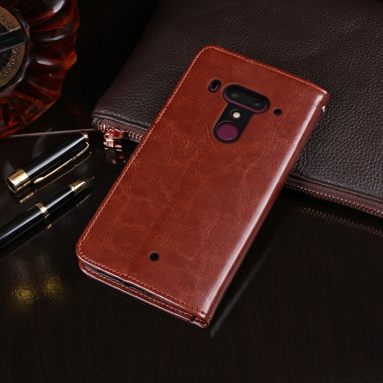 Funda de Cuero Idewei Crazy Horse para HTC U12 + con Tapa Horizontal, Soporte, Ranuras para Tarjetas y Billetera (Marrón)