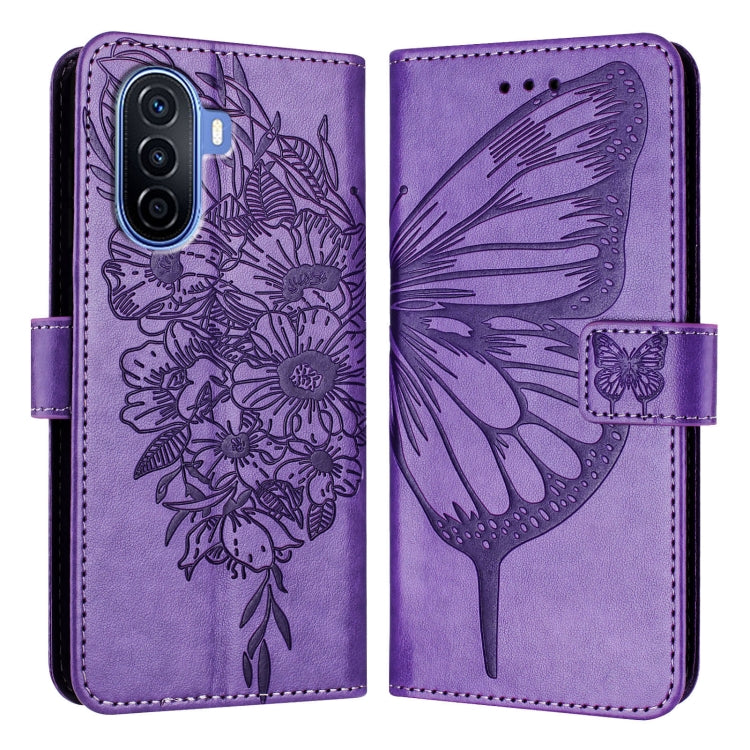 Funda para Huawei Enjoy 50 4G y Nova Y70 Plus de Cuero con Mariposa en Relieve (Púrpura)