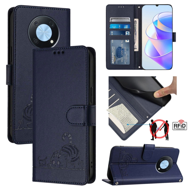 Estuche para Huawei Enjoy 50 Pro 4G de Cuero Rfid con Patrón en Relieve y Cordón (Azul)