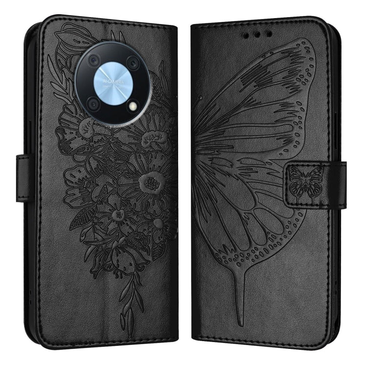 Funda de Cuero para Huawei Enjoy 50 Pro 4G y Nova Y90 con Mariposa en Relieve (Negro)