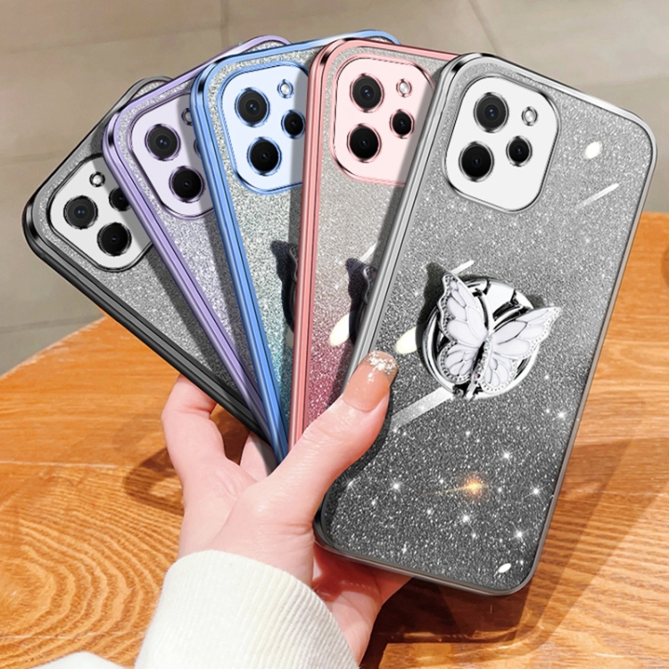 - 1x Funda TPU para Huawei Enjoy 50Z con Soporte de mariposa y brillo degradado (Rosa)
