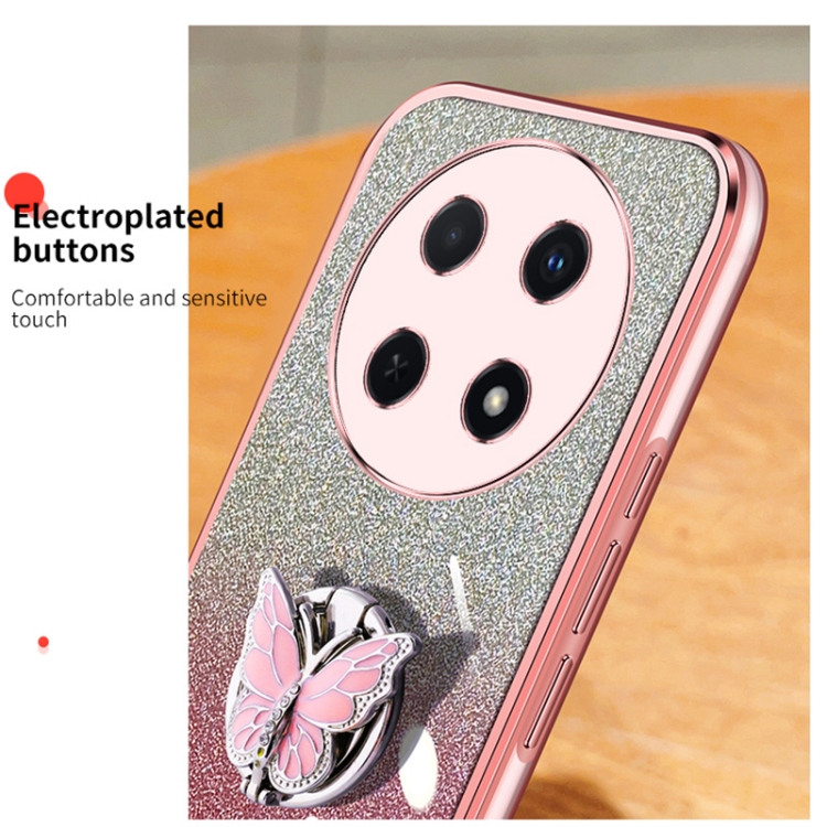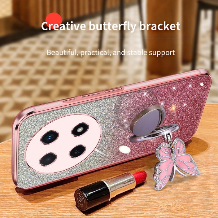 - 1x Funda TPU para Huawei Enjoy 70 Pro con Soporte mariposa y brillo degradado (Rosa)