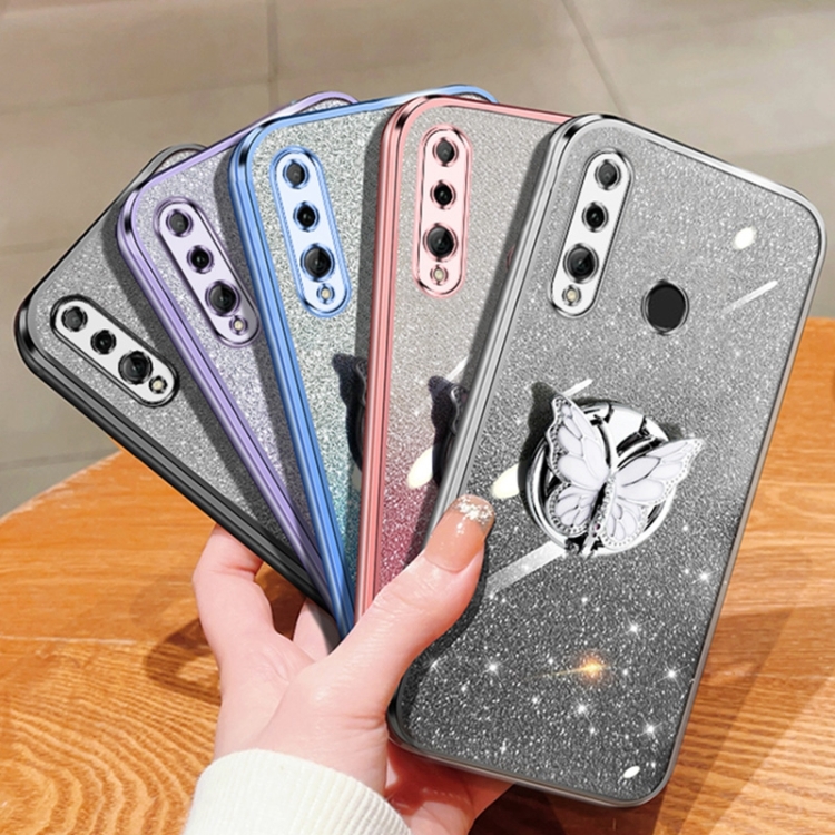 Funda TPU para Huawei Enjoy 9S con Soporte de Mariposa y Brillo Degradado (Plata)