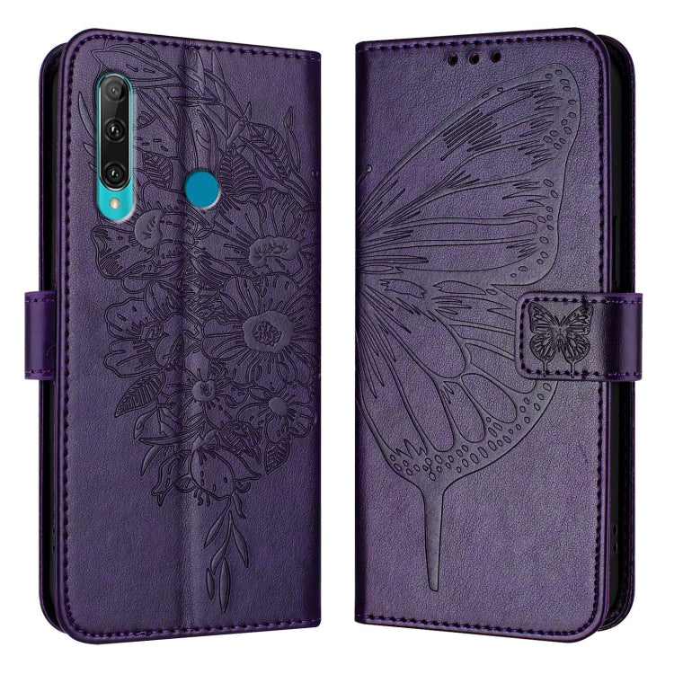 Funda para Huawei Enjoy 9S P Smart P Smart+ (2019) de Cuero con Mariposa en Relieve (Púrpura Oscuro)
