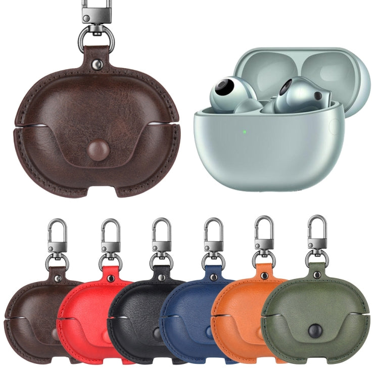 Funda Protectora de Cuero para Huawei Freebuds Pro 3 Business con Gancho (Marrón Oscuro)