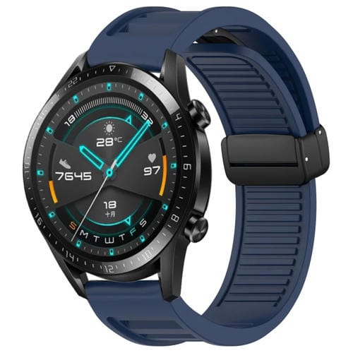 Correa de Reloj Silicona Huawei GT2 46mm 22mm Hebilla Magnética Plegable (Azul Medianoche)