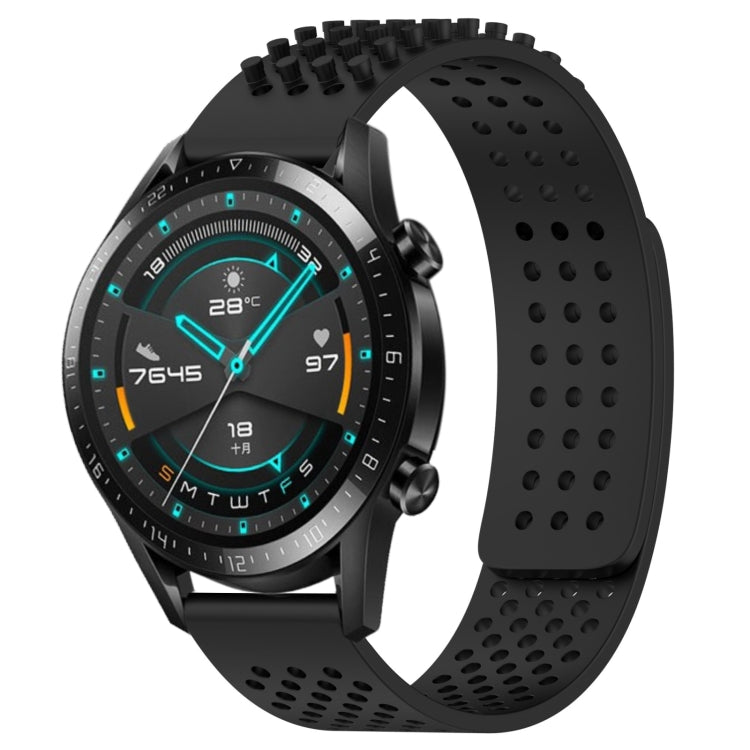 Correa de Reloj silicona para Huawei GT2 46mm 22mm orificios puntos 3D transpirables (Negro)