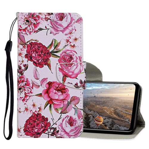 Funda de Cuero para Huawei Honor 9X con Tapa Horizontal, Soporte, Ranuras para Tarjetas y Billetera (Peony)