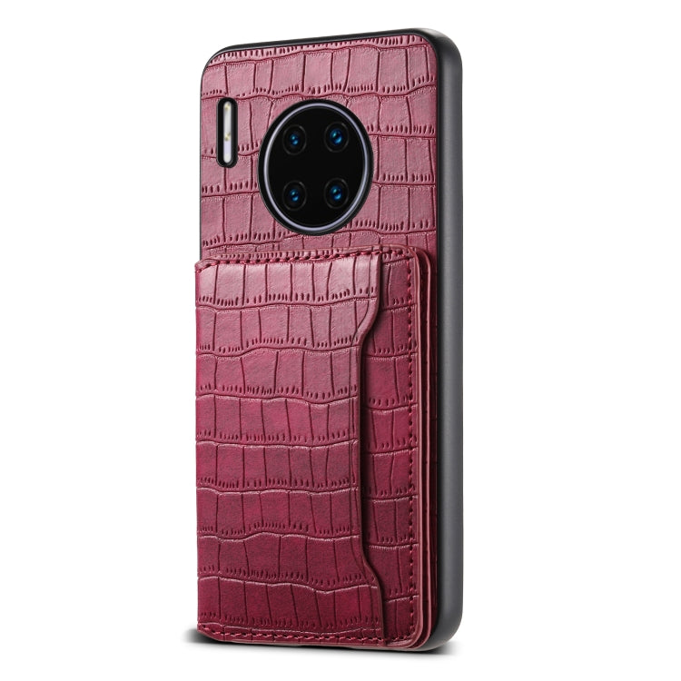 Funda para Huawei Mate 30 Pro con Diseño de Bolsa para Tarjetas y Textura de Cocodrilo (Rojo)