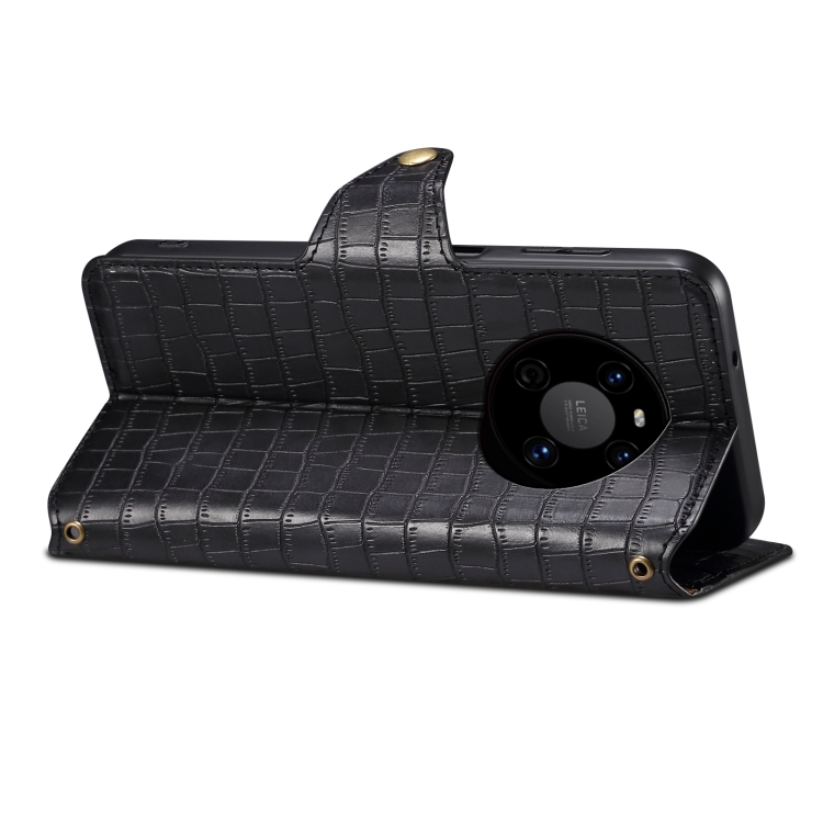 Funda para Huawei Mate 40 Denior de Cuero con Borde de Aceite y Textura de Cocodrilo (Negro)