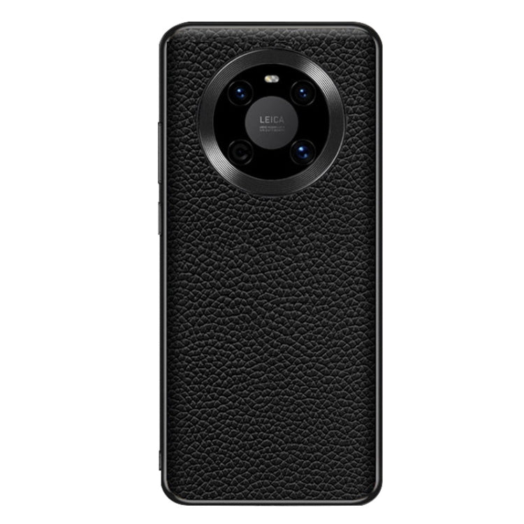 Funda para Huawei Mate 40 con Textura Litchi de Cuero Genuino (Negro)