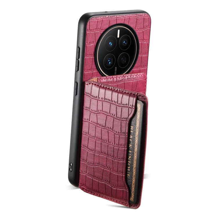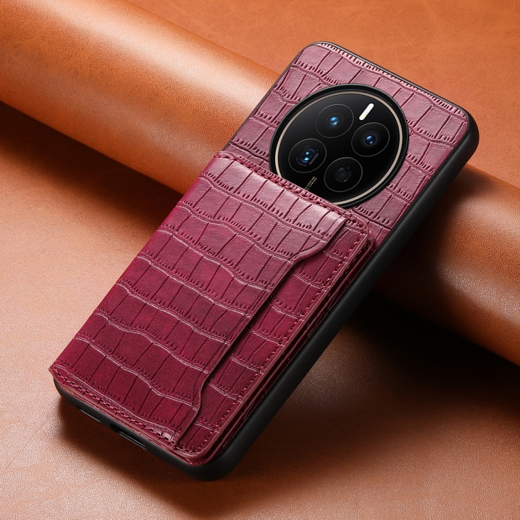 Funda para Huawei Mate 50 con Diseño Bolsa para Tarjetas y Textura de Cocodrilo (Rojo)