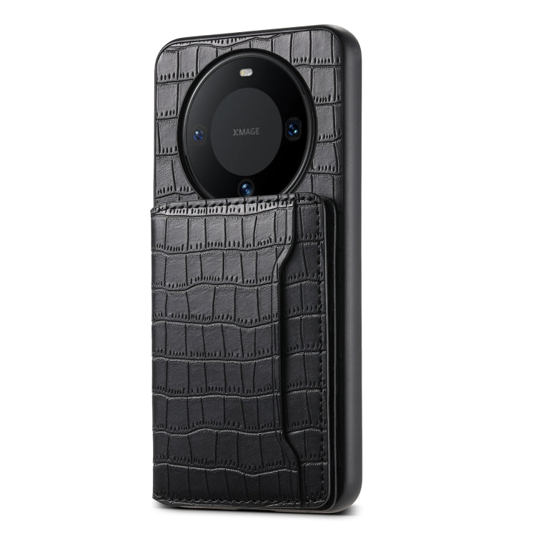 Estuche para Huawei Mate 60 con Diseño de Bolsa para Tarjetas y Textura de Cocodrilo (Negro)