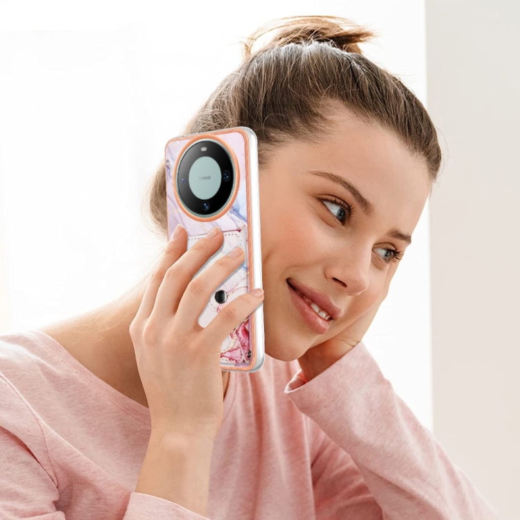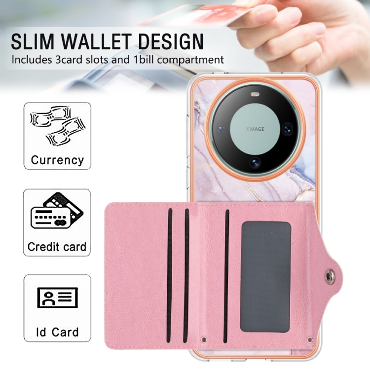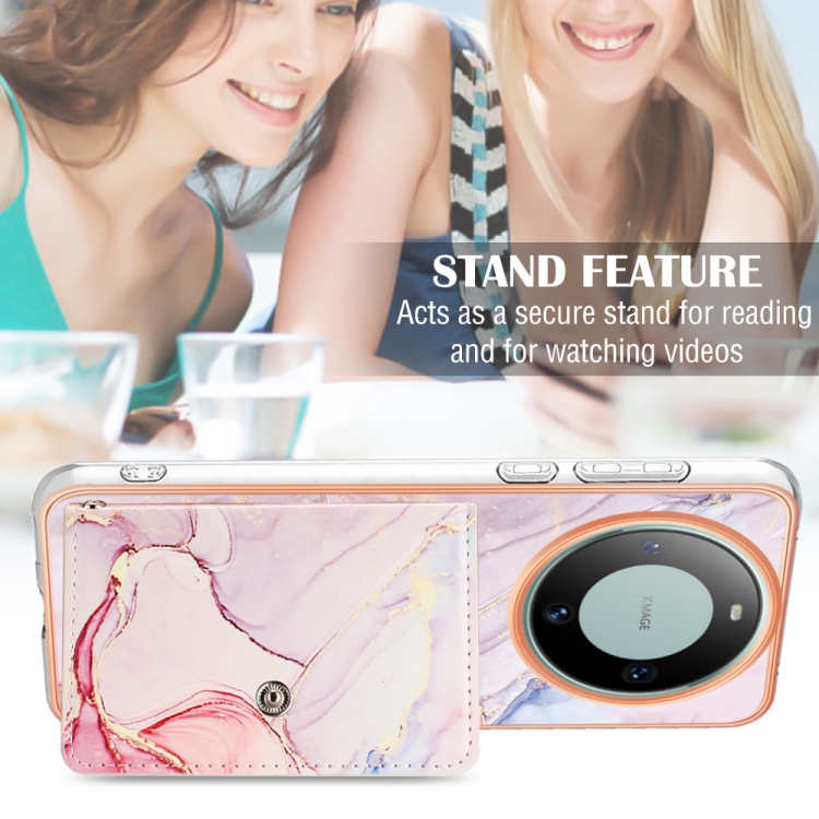 Estuche para Huawei Mate 60 con Ranura para Tarjeta IMD y Patrón Mármol (Oro Rosa)