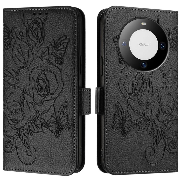 Funda de Teléfono Huawei Mate 60 Cuero Antirrobo RFID con Relieve Rosa (Negro)