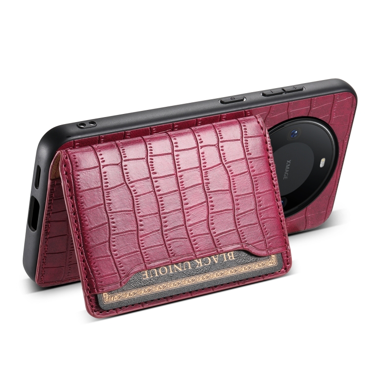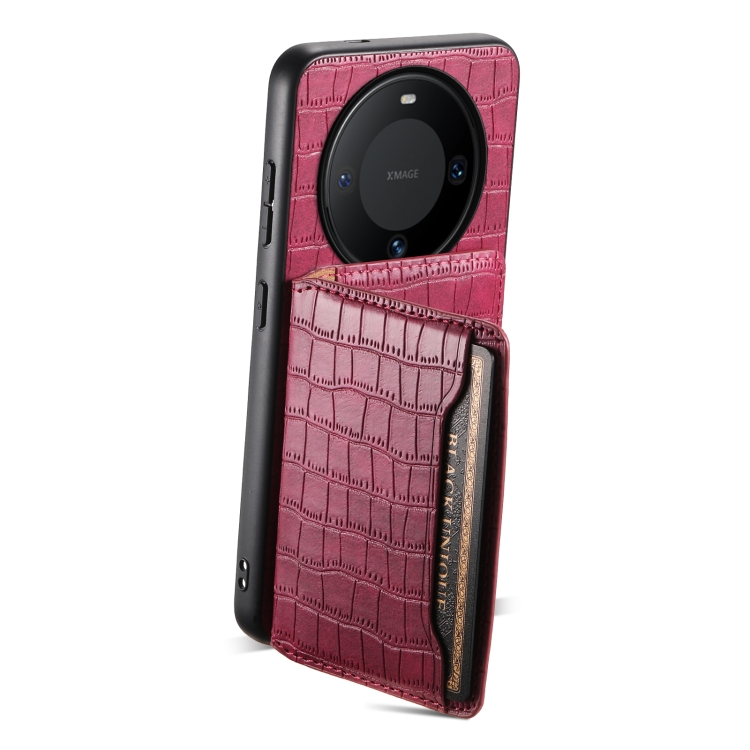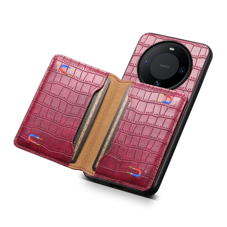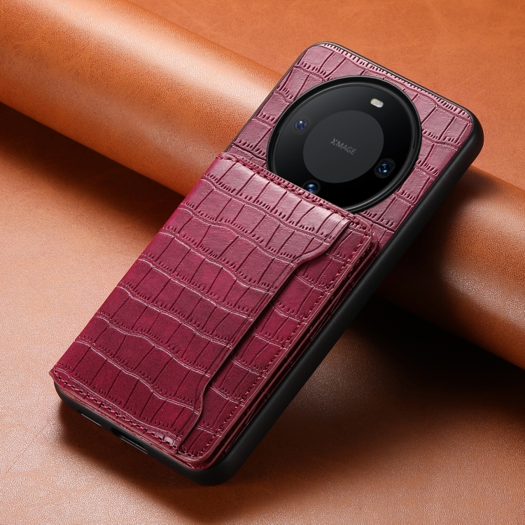 Funda para Huawei Mate 60 con Diseño Bolsa para Tarjetas y Textura de Cocodrilo (Rojo)