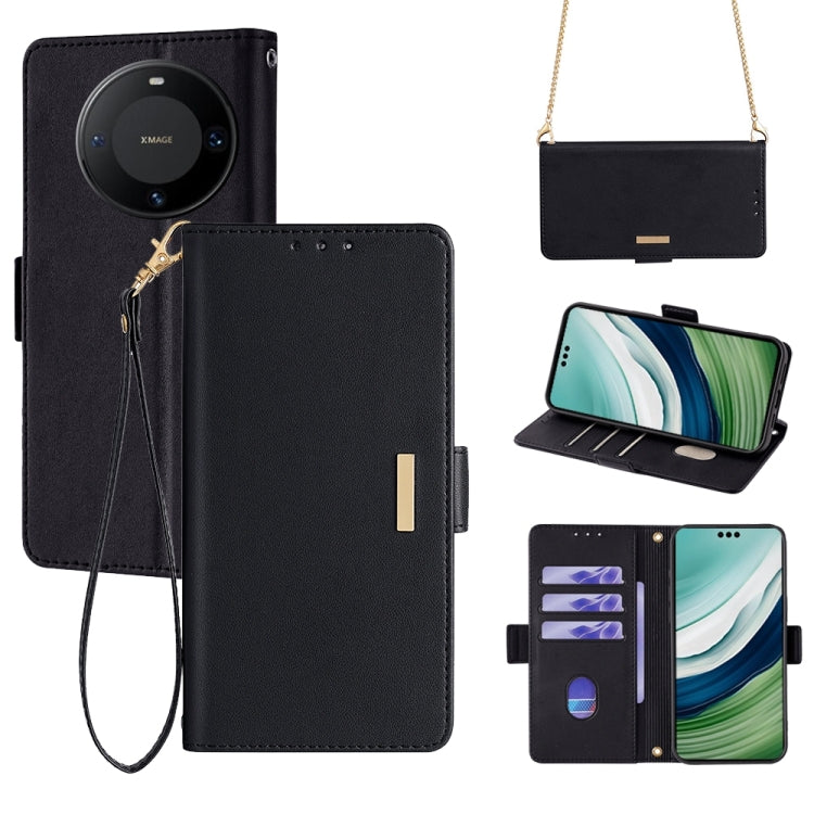 Funda de Cuero para Huawei Mate 60 Pro+ y 60 Pro con Cadena Cruzada (Negro)