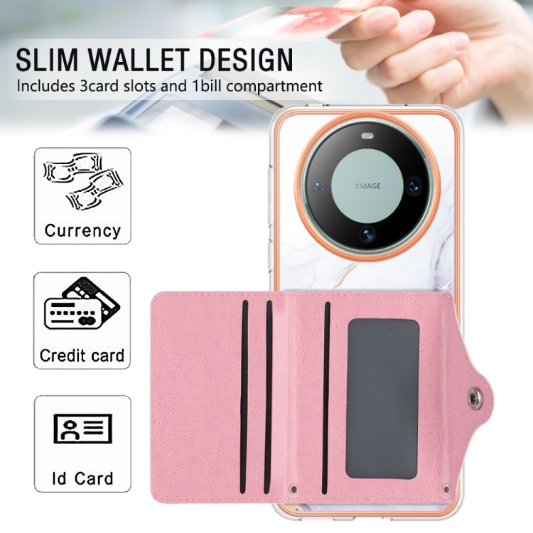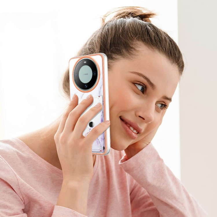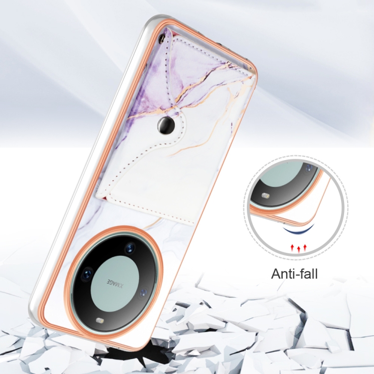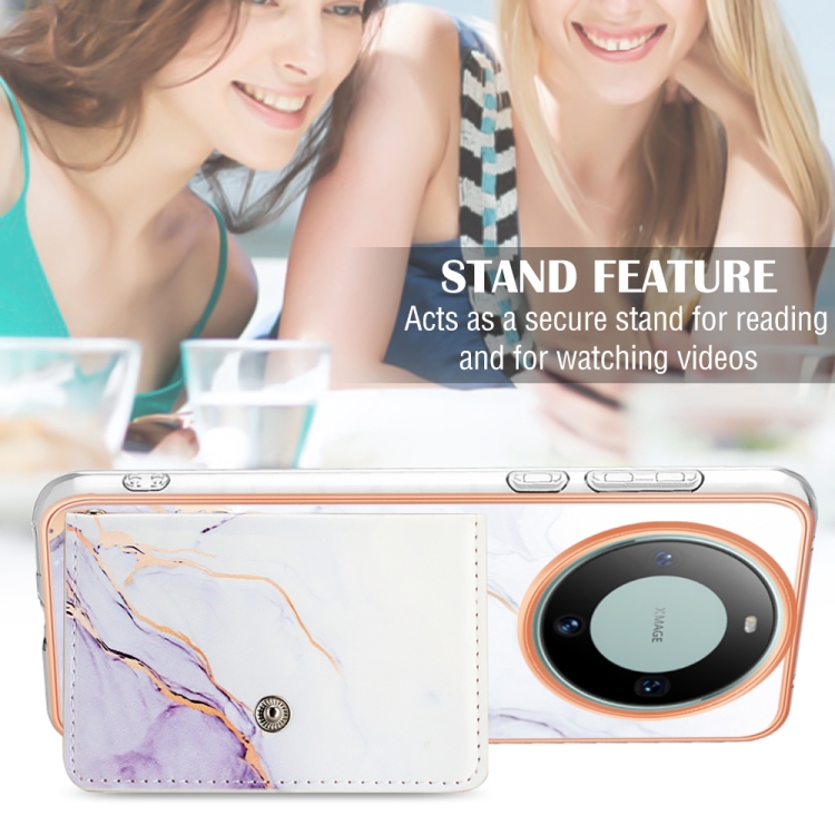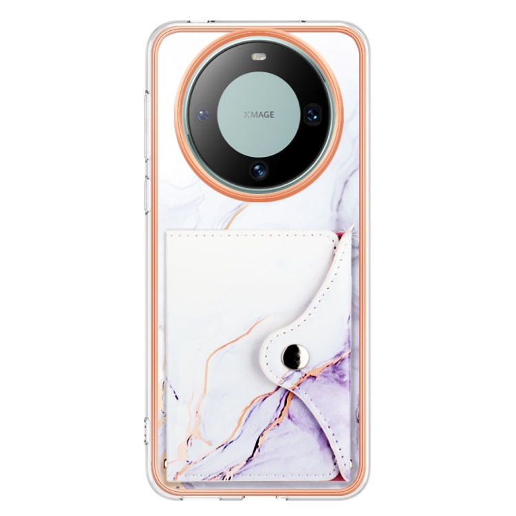 Estuche para Teléfono Huawei Mate 60 Pro con Ranura para Tarjeta IMD Patrón Mármol (Blanco y Morado)