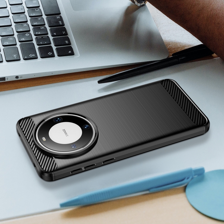 Funda de Teléfono Huawei Mate 60 Pro TPU Fibra de Carbono Textura Cepillada (Negro)