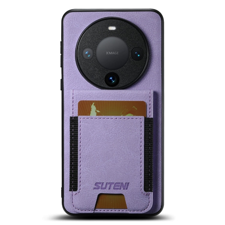 Funda Suteni H03 para Huawei Mate 60 Pro con Soporte para Tarjeta Cuero Litchi (Púrpura)