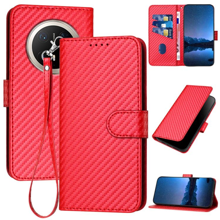 Funda de Cuero para Huawei Mate 70 Pro y Mate 70 Pro+ Yx0070 con Hebilla de Fibra de Carbono y Cordón (Rojo)