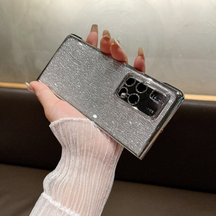 - 1x Estuche para Huawei Mate X2 con hebilla lateral y cobertura total de papel con purpurina ondulada (Plata)
