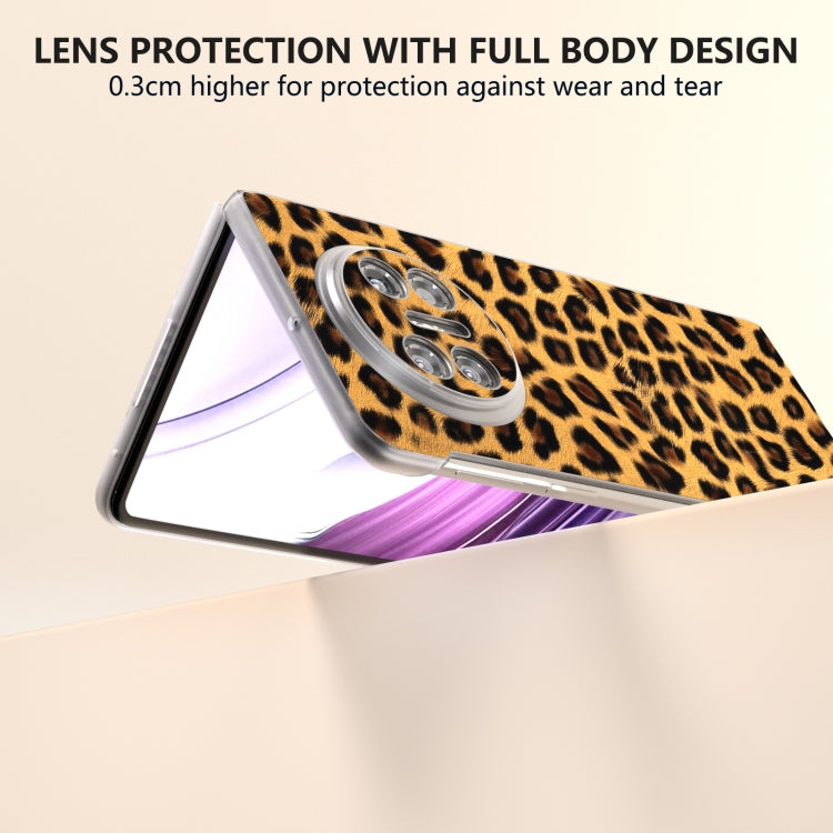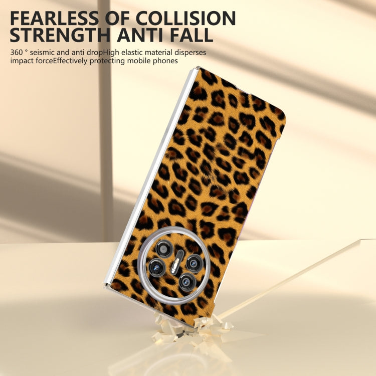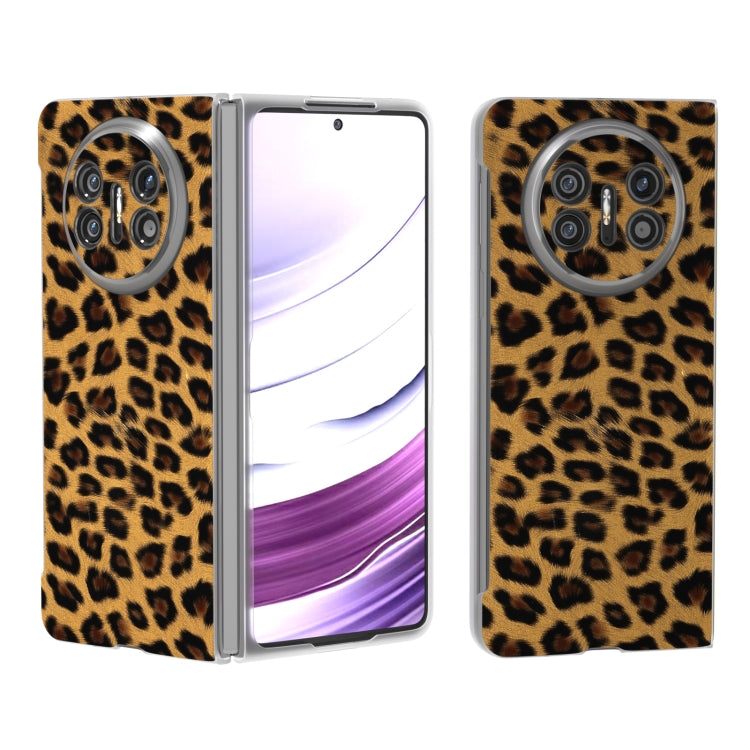 Estuche para Huawei Mate X5 con Estampado de Leopardo y Borde Transparente Esmerilado (Marrón)