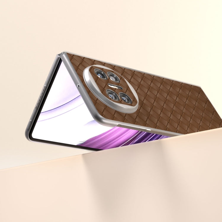 Funda para Huawei Mate X5 de PU con Marco Translúcido Esmerilado y Textura Tejida (Marrón)