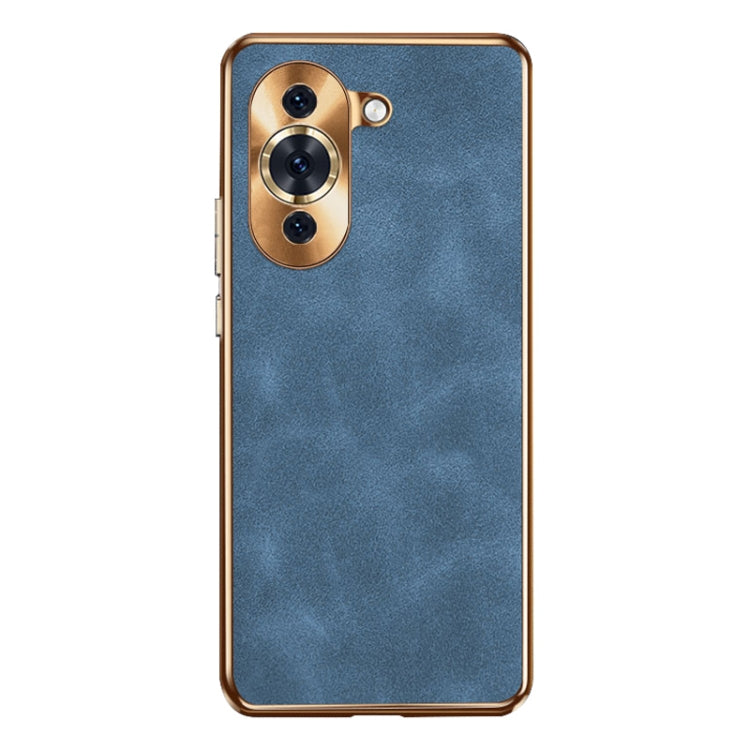 Funda de Cuero Piel de Cordero para Huawei Nova 10 Galvanizada (Azul)