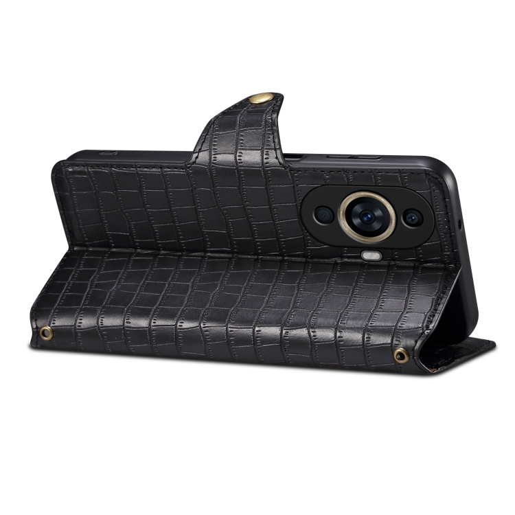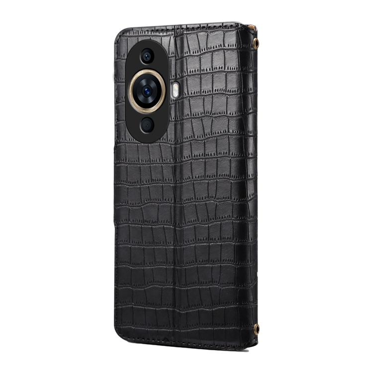 Funda para Huawei Nova 11 Denior de Cuero con Borde de Aceite y Textura de Cocodrilo (Negro)