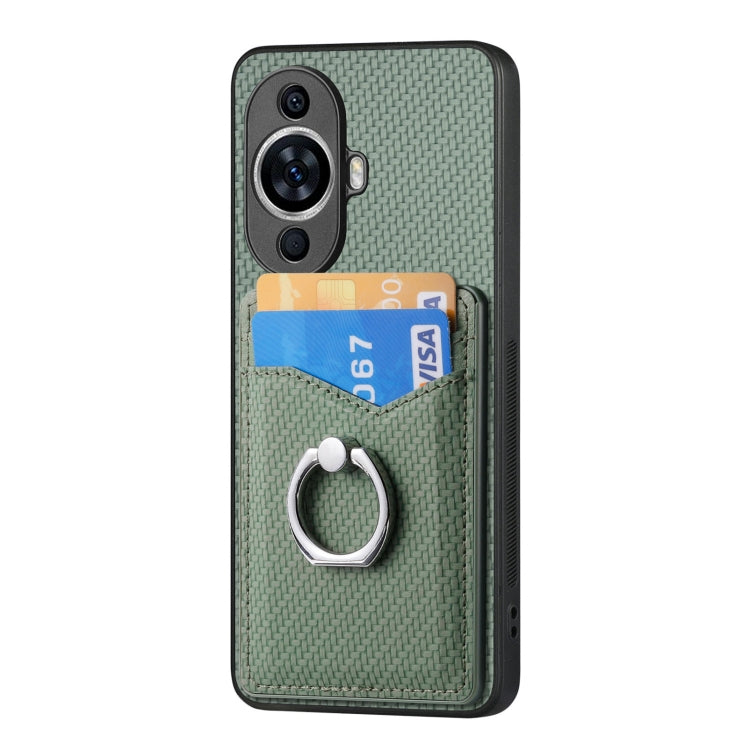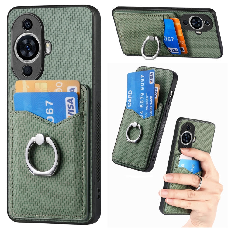Funda para Huawei Nova 11 con Anillo y Billetera con Tarjeta de Fibra de Carbono (Verde)