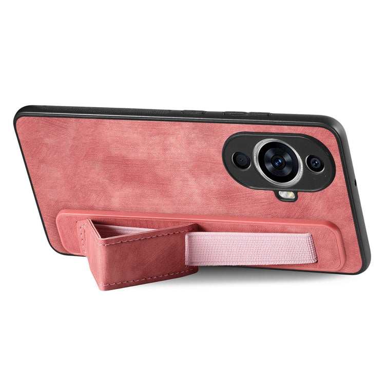 Funda Trasera de Cuero para Huawei Nova 11 con Soporte para Pulsera Retro (Rosa)
