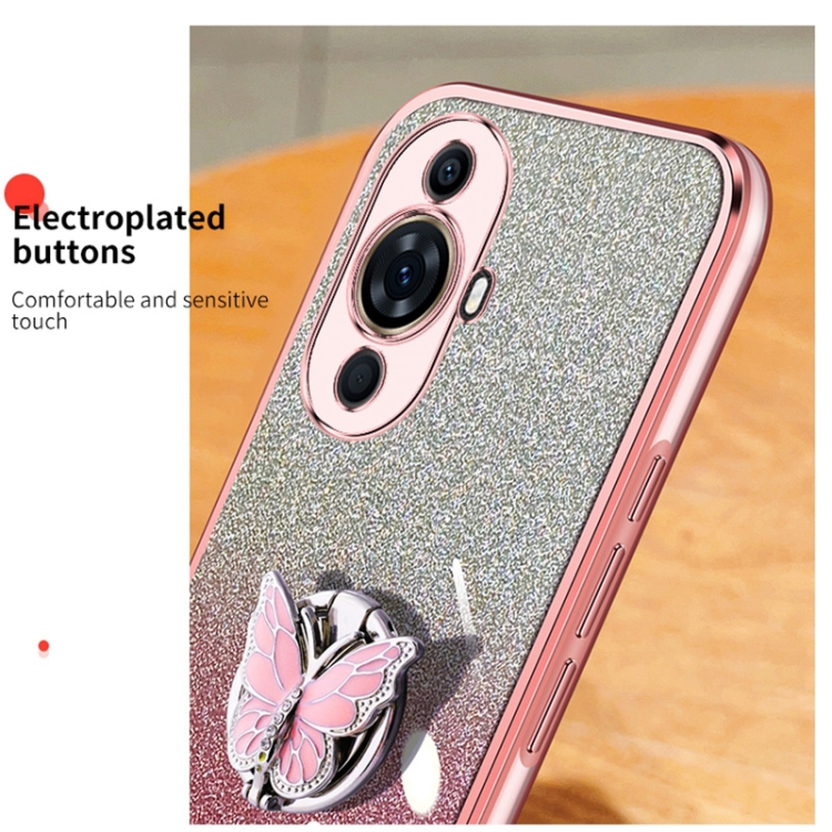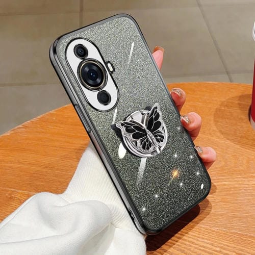 - 1x Funda TPU para Huawei Nova 11 Pro con Soporte de mariposa y brillo degradado (Negro)