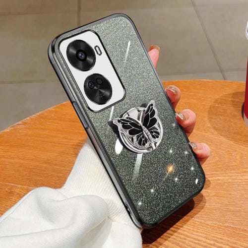 - 1x Funda TPU para Huawei Nova 11 Se con Soporte de mariposa y brillo degradado (Negro)