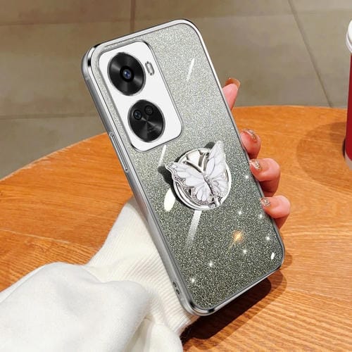 - 1x Funda TPU Huawei Nova 11 Se con Soporte de Mariposa y Brillo Degradado (Plata)