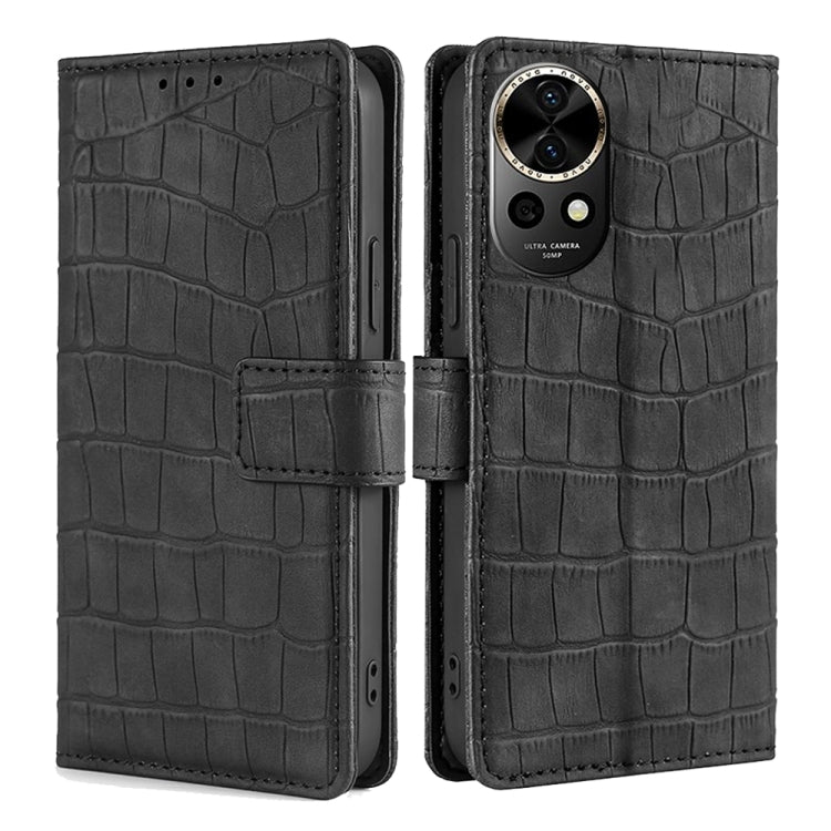 Funda de Cuero Skin Feel Crocodile para Huawei Nova 12 5G con Cierre Magnético (Negro)