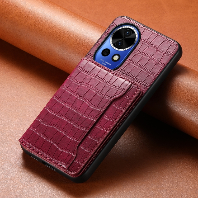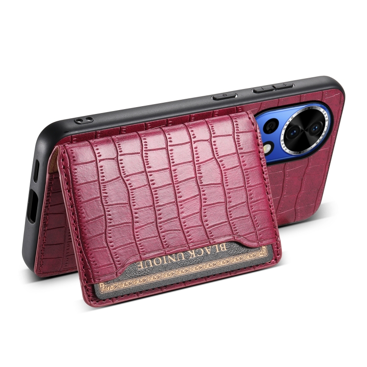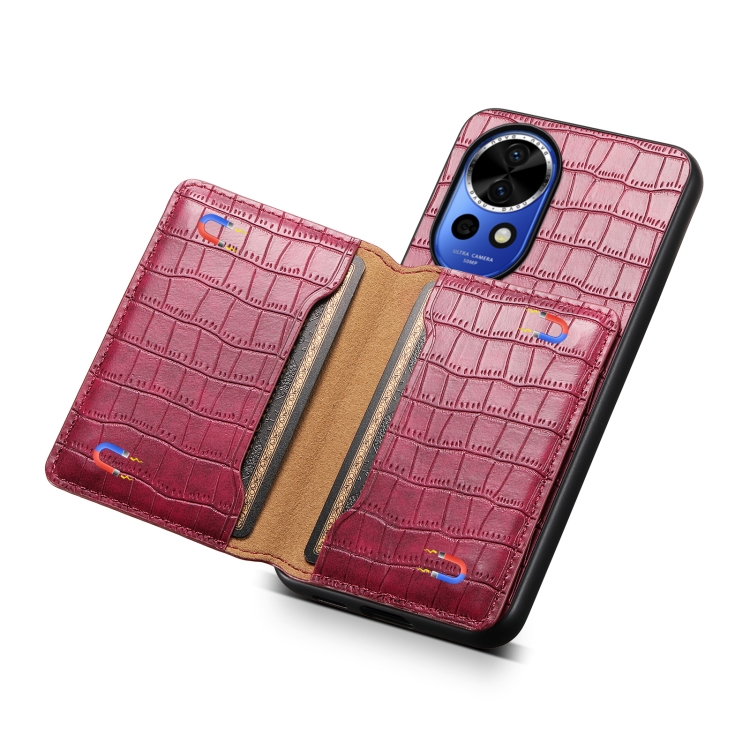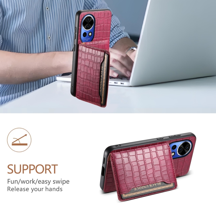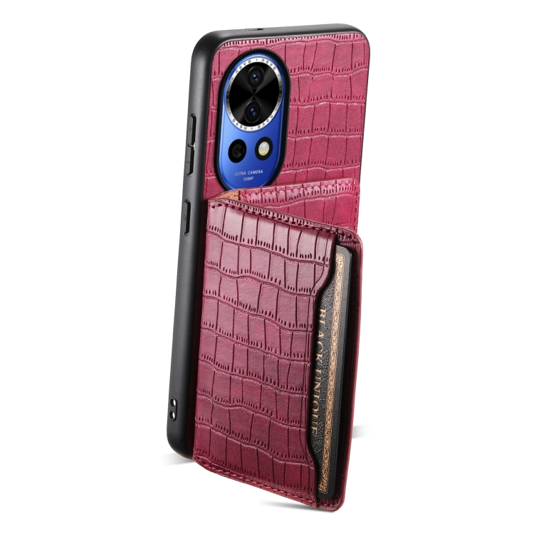 Estuche para Huawei Nova 12 con Diseño Bolsa para Tarjetas y Textura de Cocodrilo (Rojo)