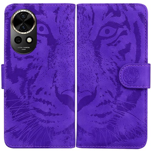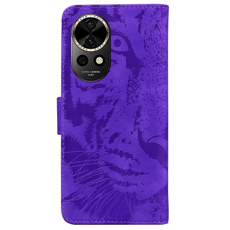 Funda de Cuero con Tapa para Huawei Nova 12 con Patrón en Relieve de Tigre (Púrpura)