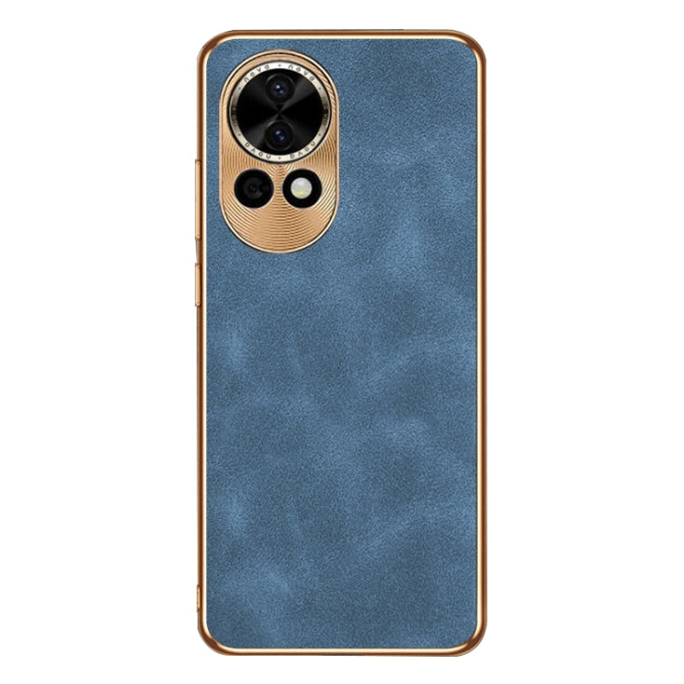 Funda de Cuero Piel de Cordero Galvanizada para Huawei Nova 12 (Azul)