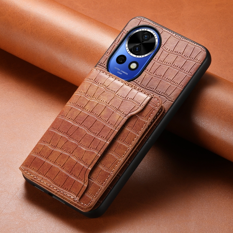 Funda para Huawei Nova 12 con Diseño de Bolsa para Tarjetas y Textura de Cocodrilo (Marrón)