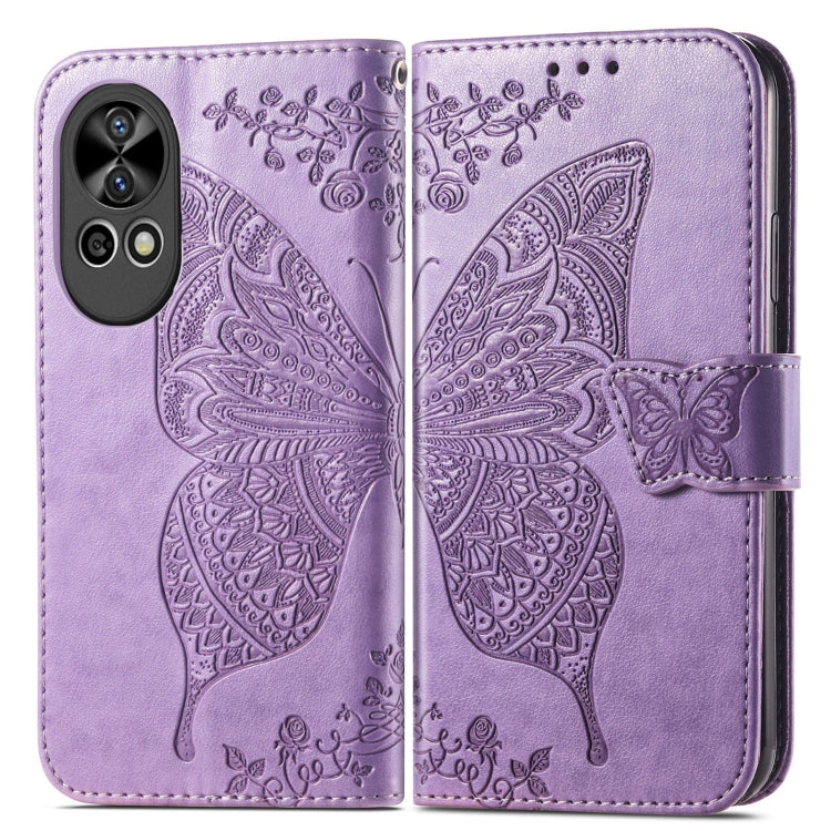 Funda de Cuero Huawei Nova 12 Pro Butterfly Love Flower en Relieve (Púrpura Claro)