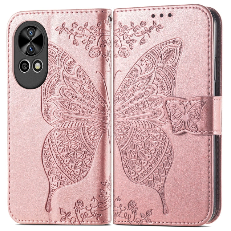 Funda de Cuero Huawei Nova 12 Pro Butterfly Love Flower en Relieve (Oro Rosa)