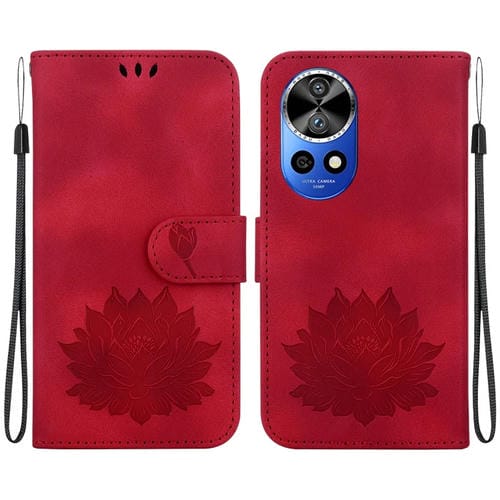 Funda de Cuero Huawei Nova 12 Pro y Nova 12 Ultra con Relieve de Loto (Rojo)